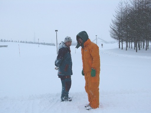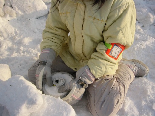 イグルーづくりの横で、なにやら違う動きが・・・。 手元を見せてもらったら、 「雪玉」です。 |