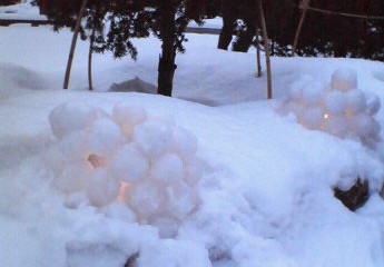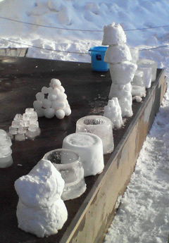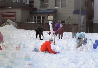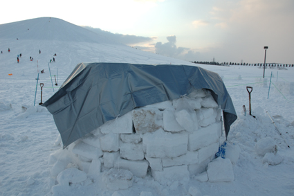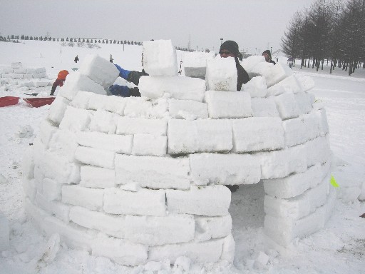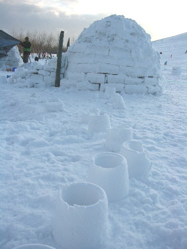 イグルー村ができあがってきました。 中央はもうかなり形になっています。 |