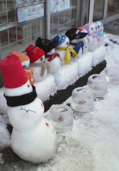 【ファイターズ通り商店街】スノーマン&雪だるま勢揃い。 |