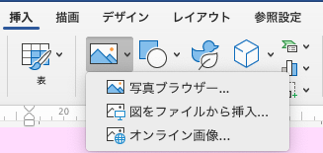 あらかじめ,用意した写真をワープロ[Word]上に貼り込むには,メニュー[挿入]の中の[図]から[ファイルから]を選び,任意のファイルを選択して取り込みます.