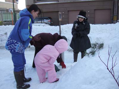 途中で、幼稚園からの帰りに通りがかった女の子も参加してくれたり 楽しく作っています^^v