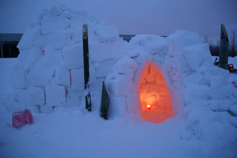 さてさて1月26日(土)夜になって モエレ沼公園に完成した『イグルー村』。
