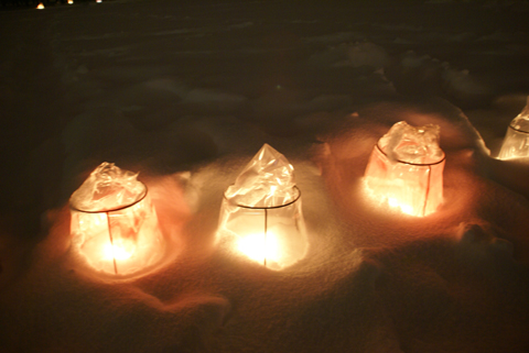 イグルーの外にはもちろん スノーキャンドル。